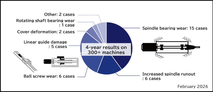 Over the past four years, AI Servo Monitor has been used on more than 300 machines in real production. It has helped detect early signs of major failures, such as scratches and damage on linear guides, ball screw wear, and spindle vibration and wear, and has led to planned repairs and replacements.