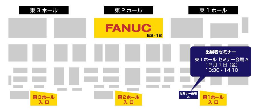 ファナックは【東2ホール・E2-18】に出展しています。