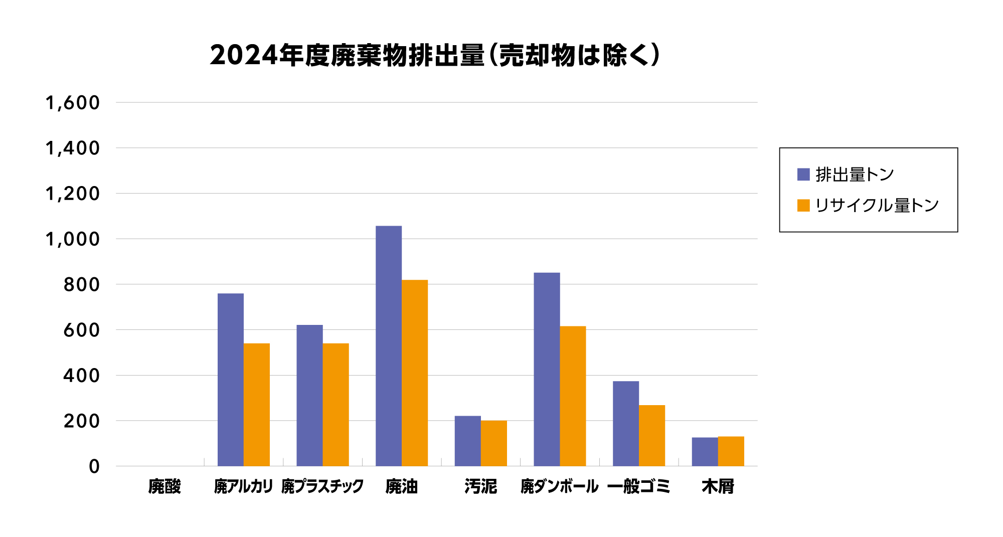 また、金属屑(27,446t)、廃プラスチック(68t)、廃液(48t)を売却しリサイクルしています。